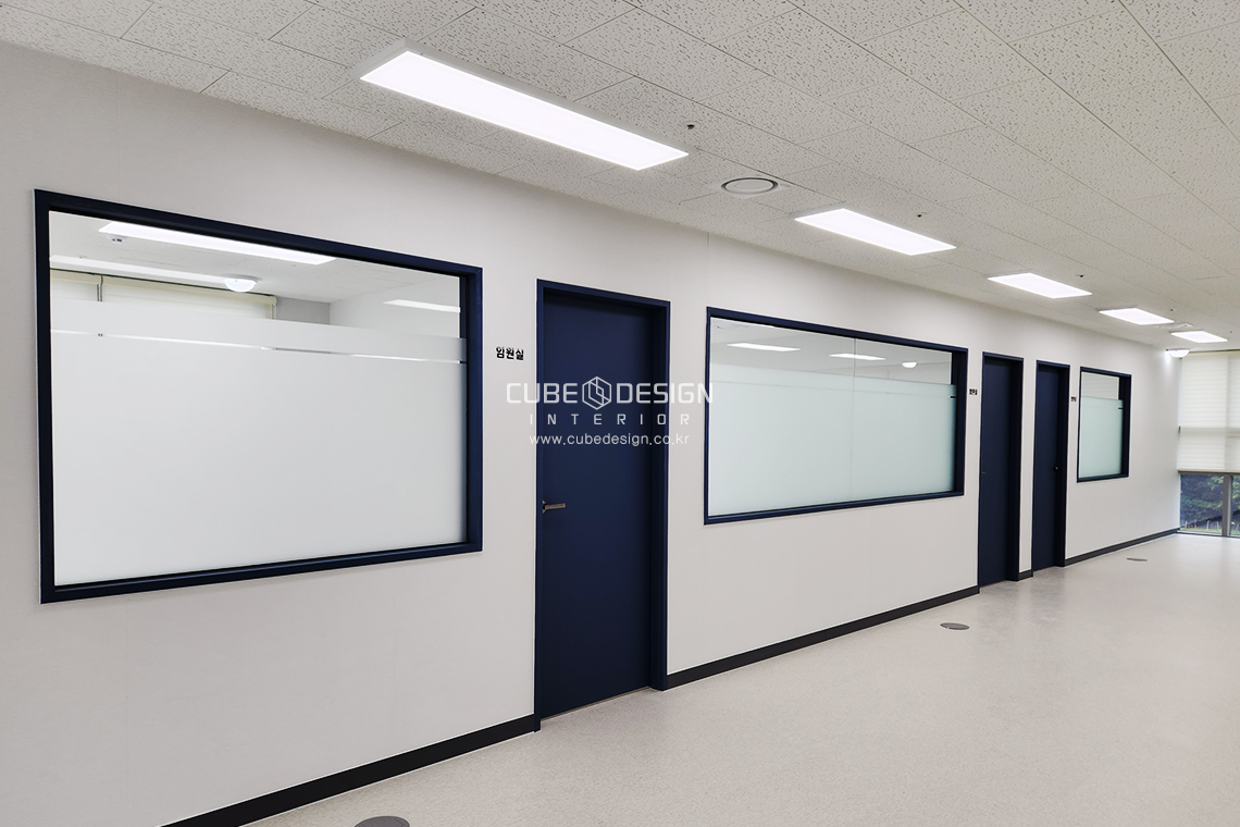 임원실에는 반유리창으로 자연광을 최대한 활용하고, 공간을 더 넓고 밝게 만드는 설계가 돋보입니다.
