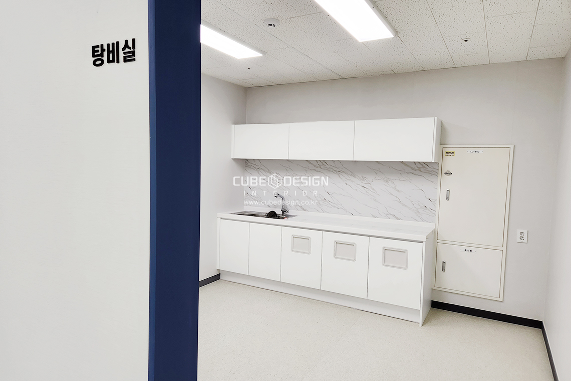 탕비실에는 여러 직원들이 휴식을 즐길수 있는 카페테리아 공간으로 활용