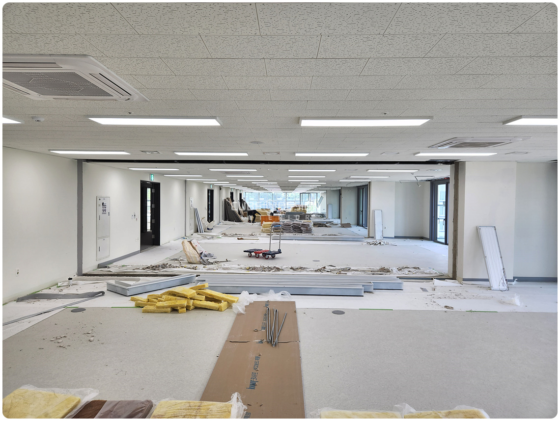 기존 사무실 공간의 구조를 변경하기 위해 필요한 철거 작업이 진행됩니다. 이 과정은 매우 신중하게 진행되어야 하며, 기존 설비를 손상시키지 않도록 주의가 필요합니다. 필요한 경우, 추가적인 구조 보강 작업도 함께 이루어집니다.