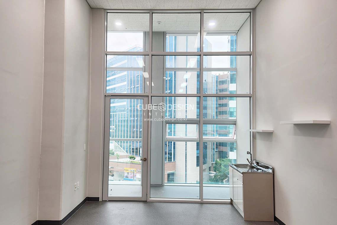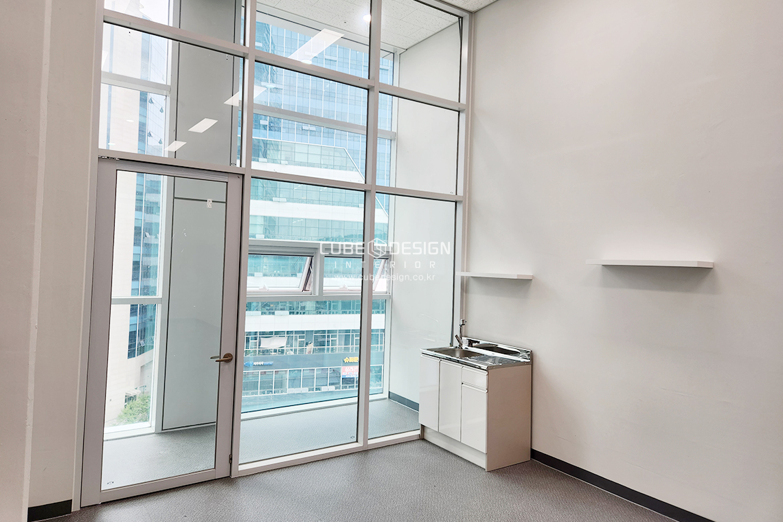 안녕하세요 사무실인테리어전문업체 큐브디자인입니다. 6월말 첫입주를 시작으로 첫 공사완료가된 동탄실리콘앨리 인테리어 현장이 있어 소개해드릴려고합니다. 실평수는 15평정도되며 저렴하고 깔끔하게 기본공사를 진행하였습니다. 드라이브인 창고형 사무실로 4.5m 높은 층고이며, 목공사,금속,필름,싱크,데코타일공사마감되었습니다.