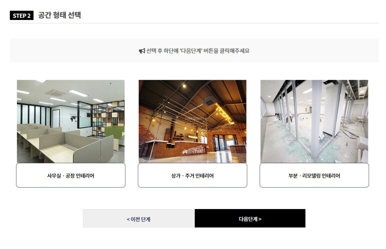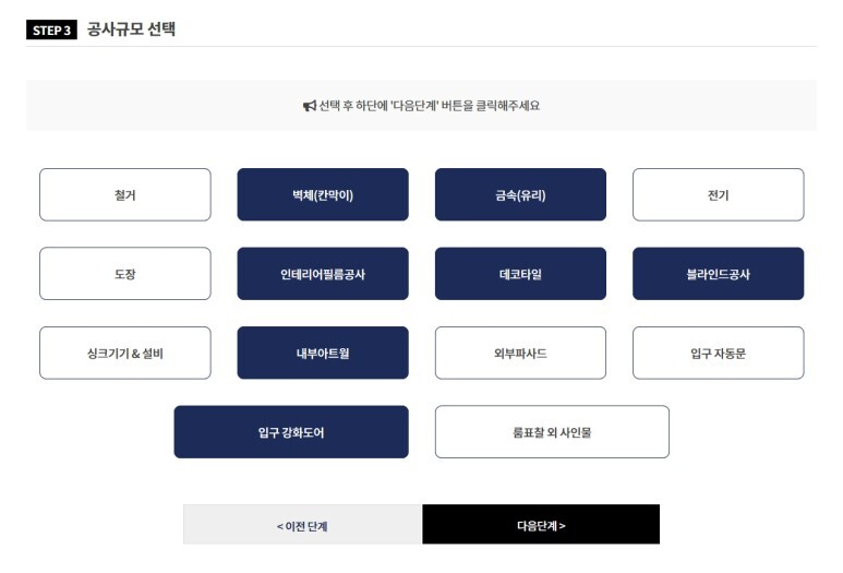 이후, 마지막 단계인 공사규모를 선택하게 됩니다.