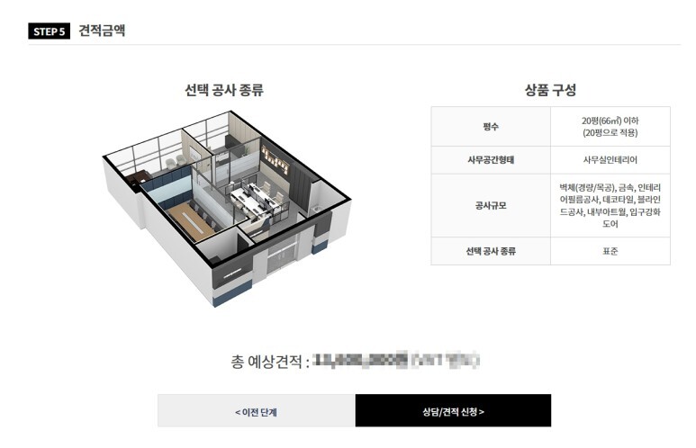 몇번의 클릭만으로 인테리어 간단견적서 예상금액이 출력됩니다.