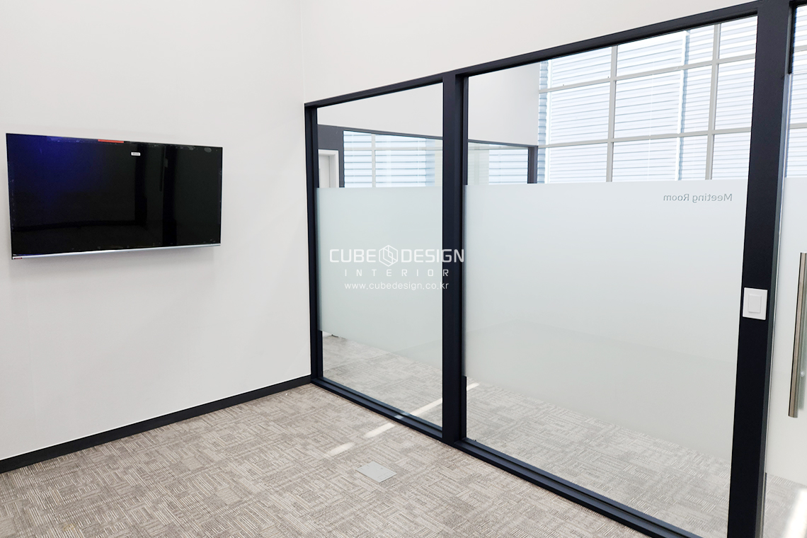 대표실 두 호실과 회의실은 방음이 중요하기 때문에 벽체를천정까지 올려마감한뒤