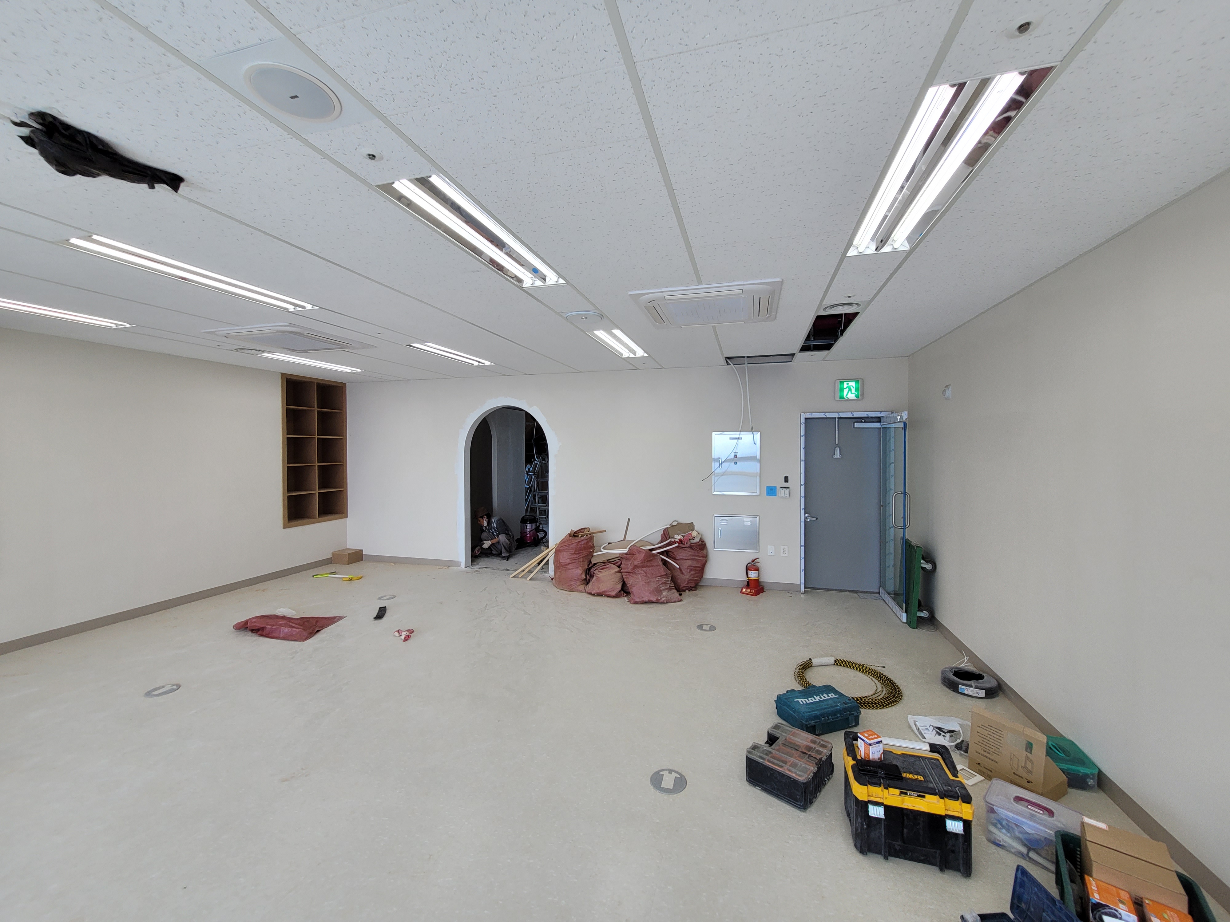 기존호실을 나누고있던 두꺼운벽체는 부분철거를 하여 안쪽은 맞춤장으로