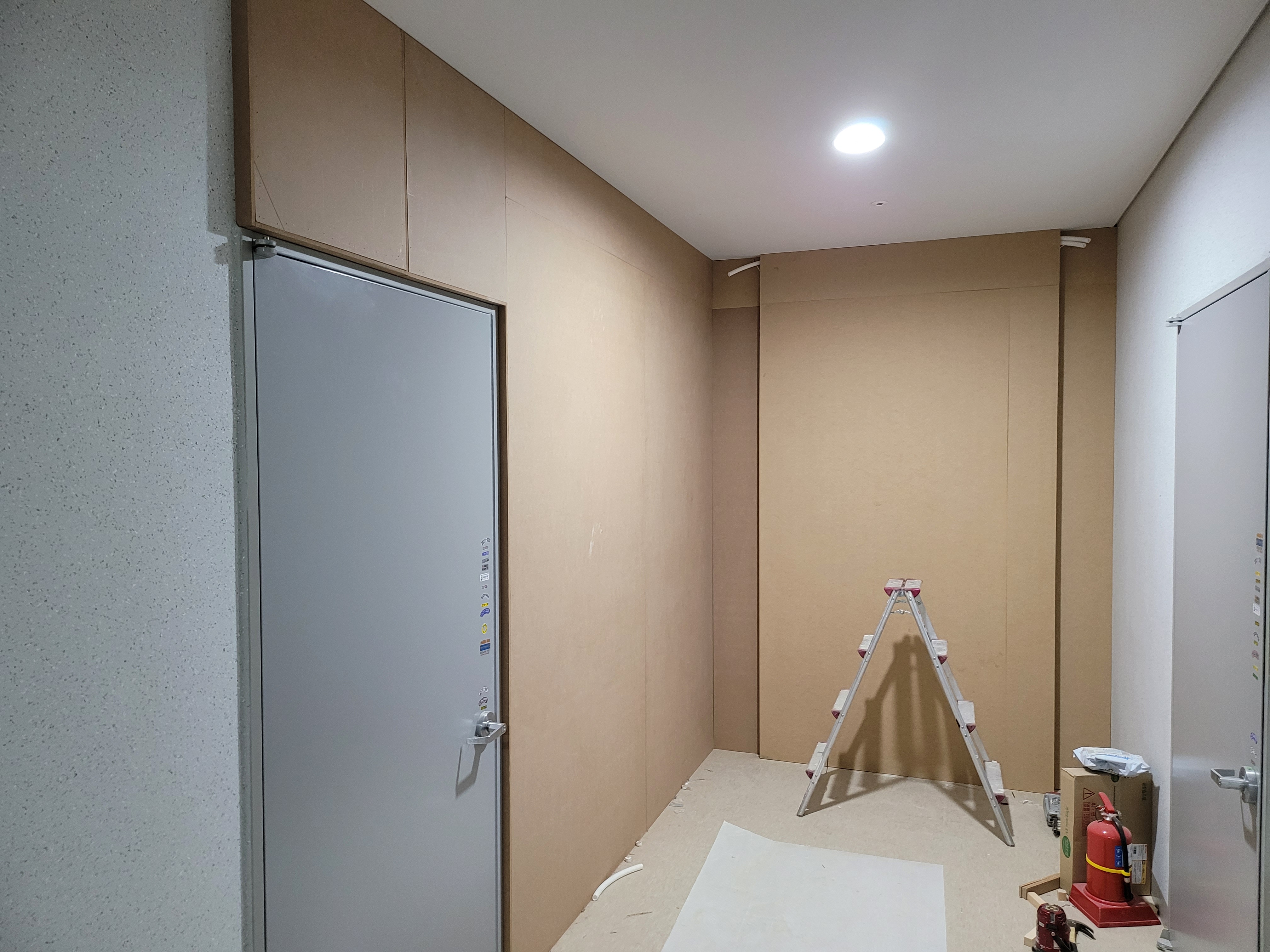 기존 문은 사용하지 않기때문에 목공으로 덮어주고