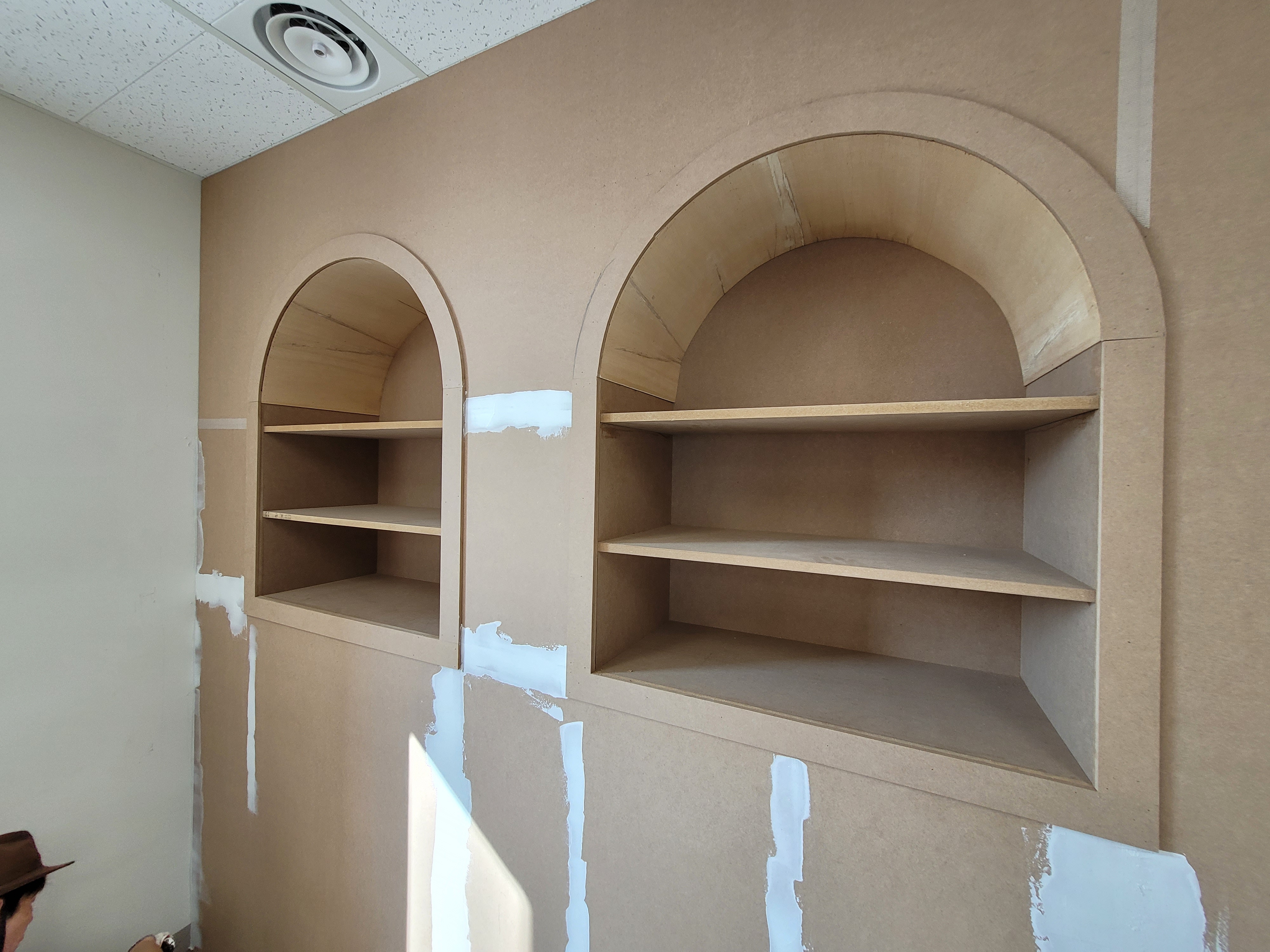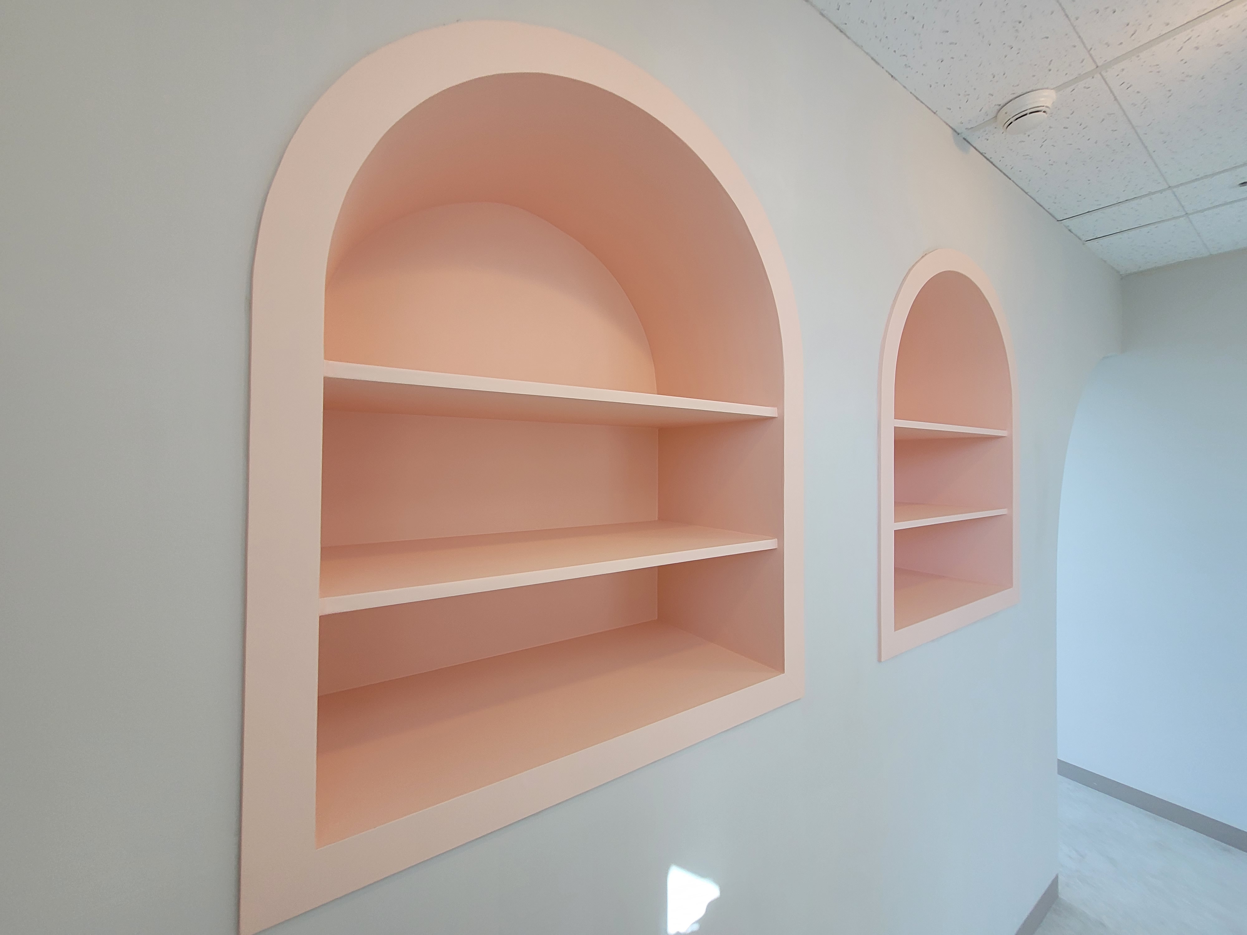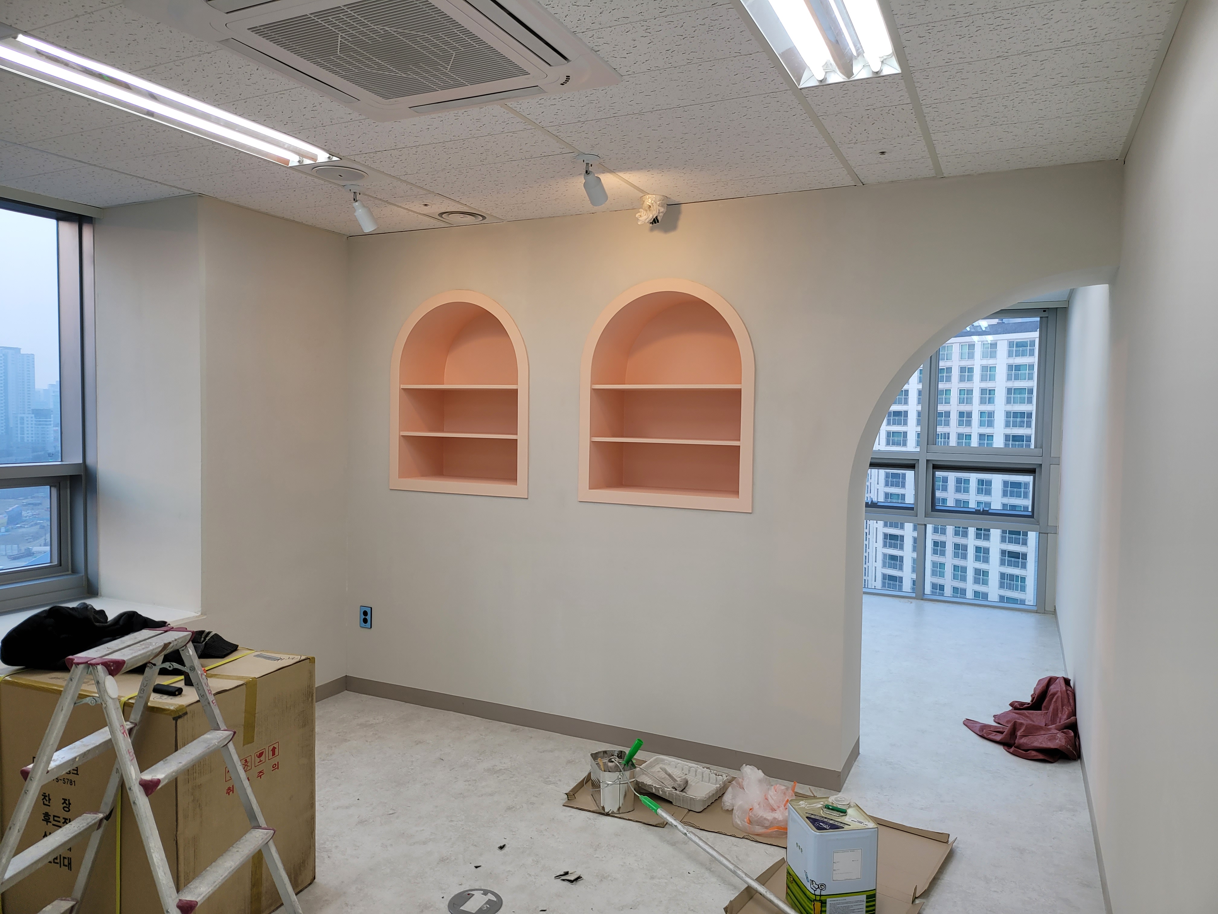 벽체를활용한 선반입니다 책상과 집기가 들어오면 빈틈없는 인테리어가 완성됩니다.