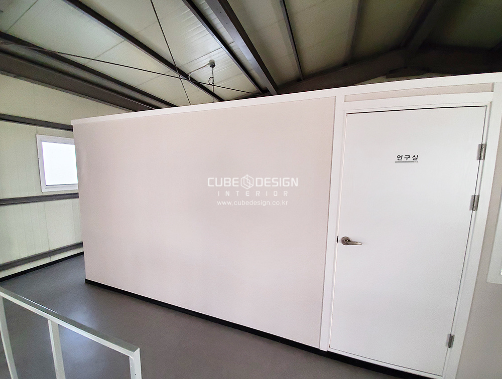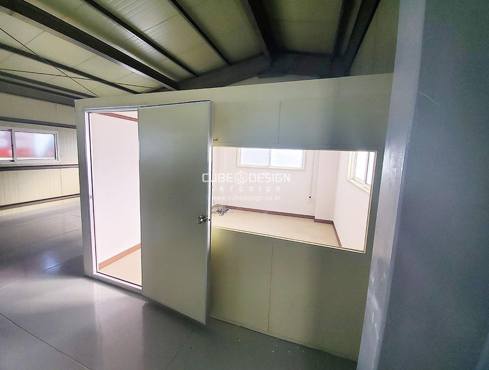 공장내부에 구조물을세워 사무공간을 조성하고 합지와 필름등 마감재를 사용하여 마감하였습니다.