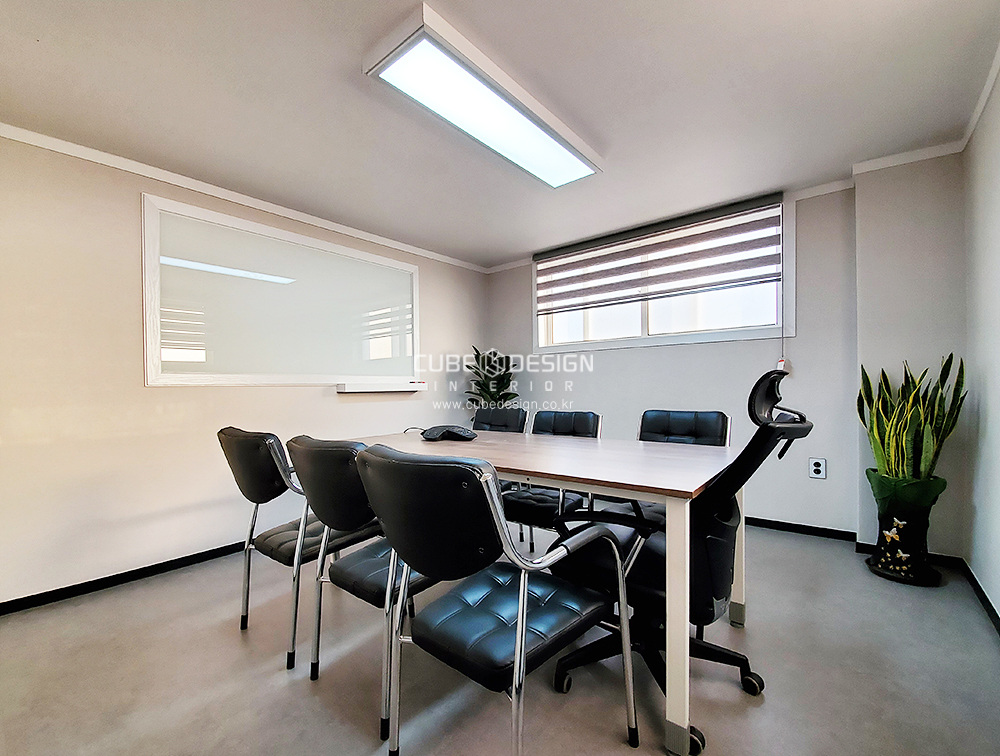 회의실은 컬러유리와 데코타일을 이용하여 깔끔하게 시공/디자인 해주고