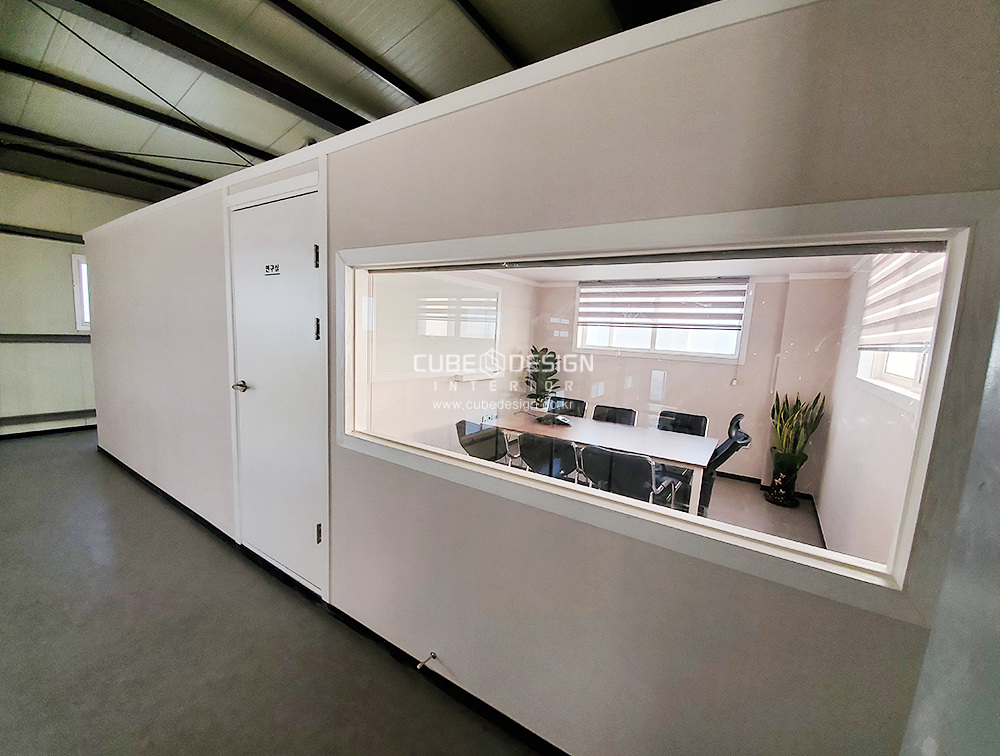 공장내부에 구조물을세워 사무공간을 조성하고 합지와 필름등 마감재를 사용하여 마감하였습니다.