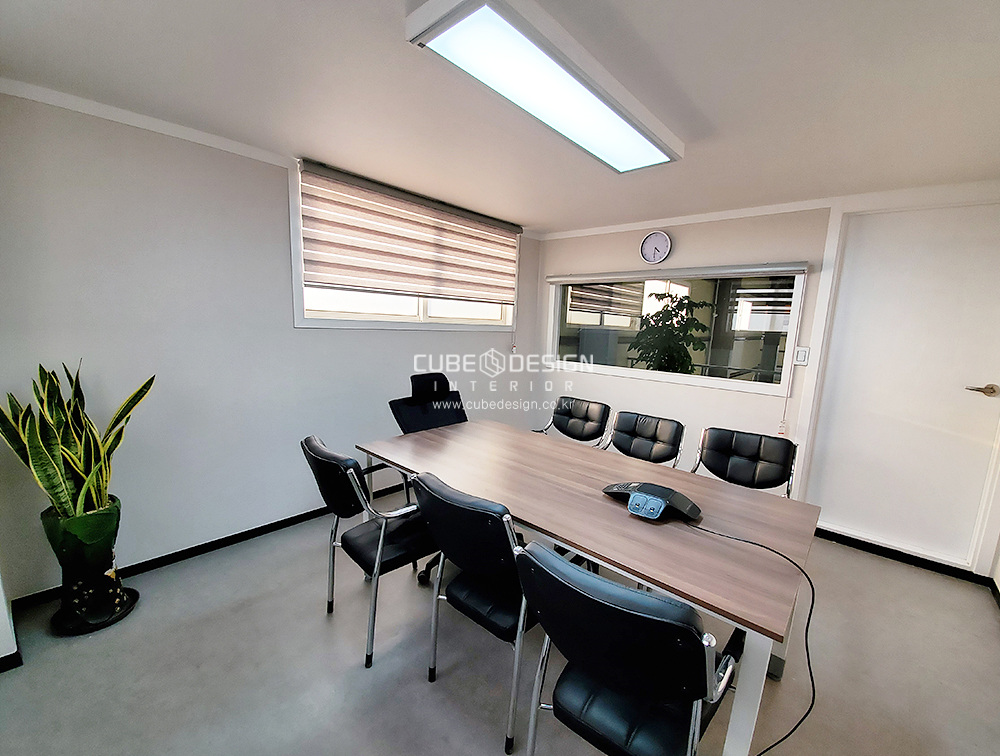 회의실은 컬러유리와 데코타일을 이용하여 깔끔하게 시공/디자인 해주고