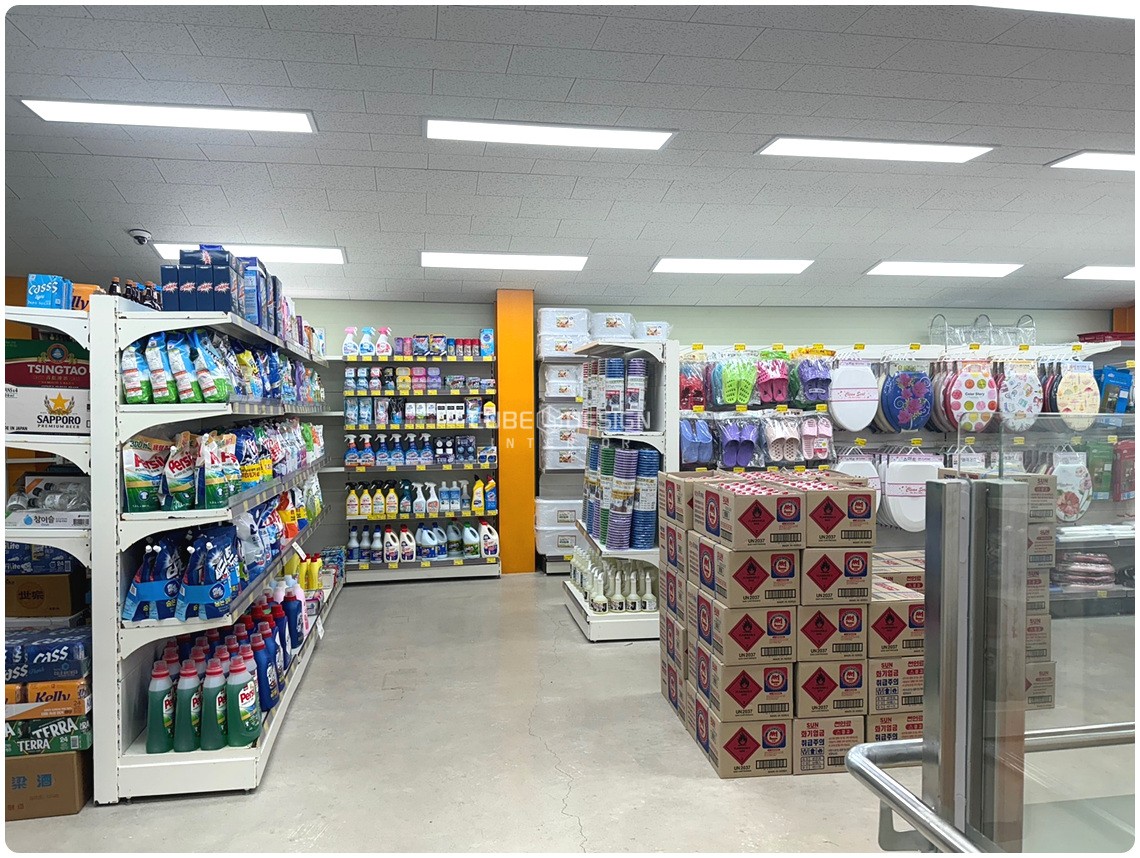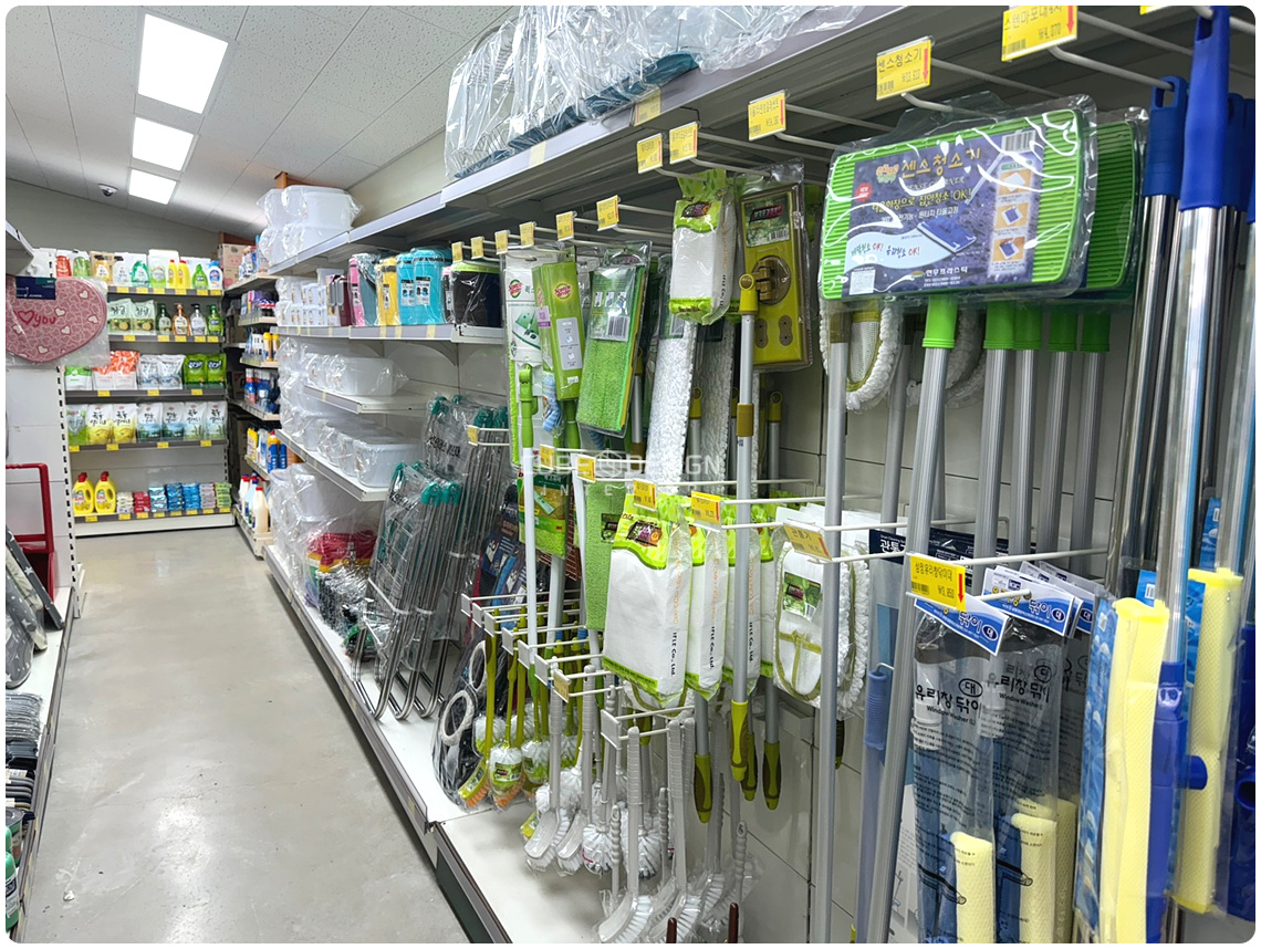 일상생활에 필요한 세제, 청소용품, 수납용품부터 주방 도구와 기기까지 다양하게 준비되어 있었습니다.