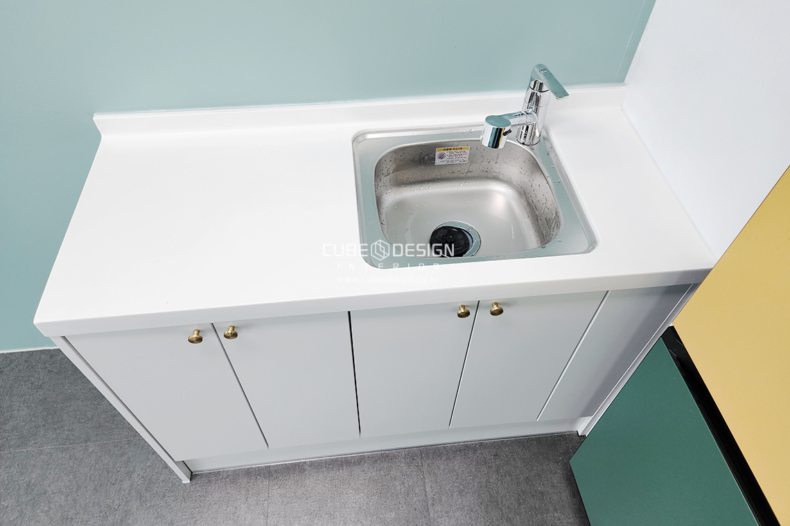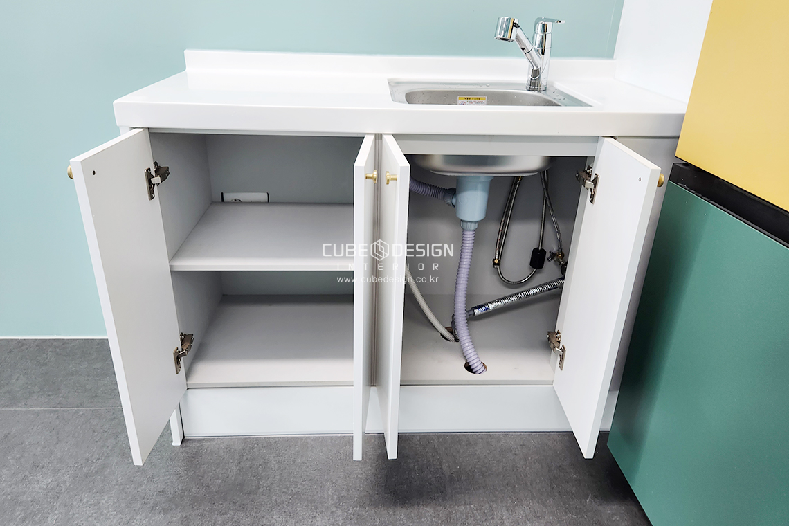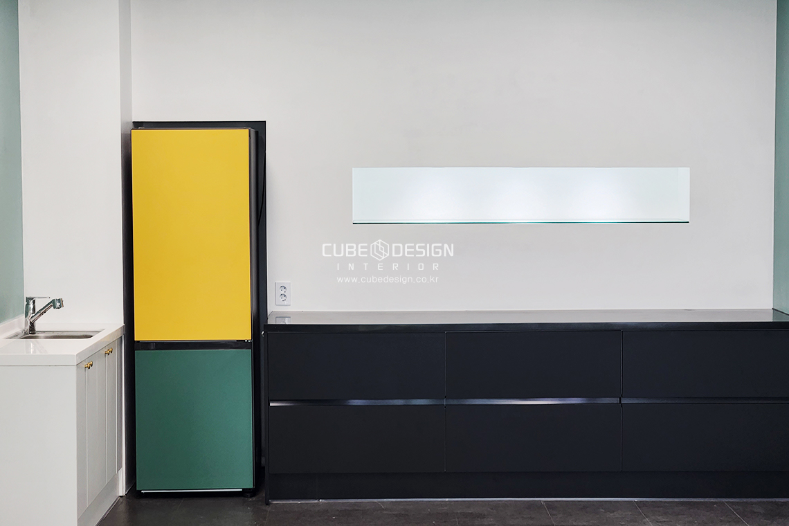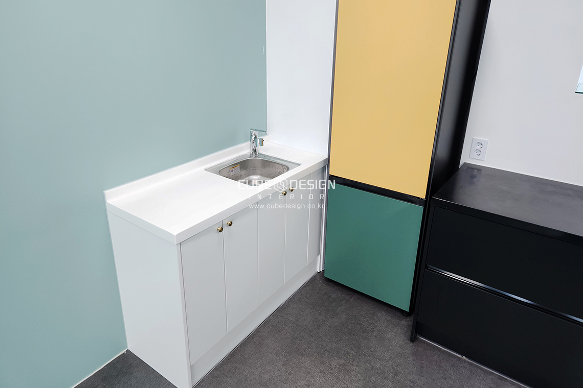 따로 탕비시설룸을 신설하지 않고 공용으로 활용가능한 오픈공간으로 공사가 완료되었습니다.