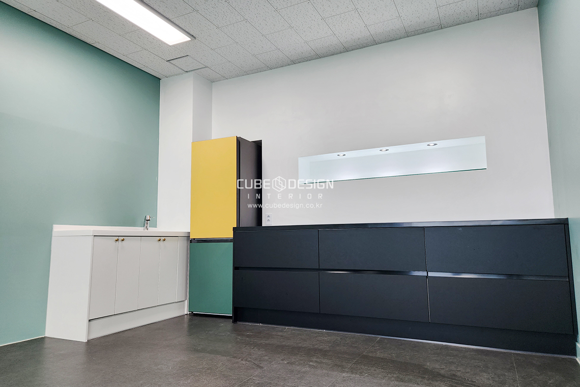 따로 탕비시설룸을 신설하지 않고 공용으로 활용가능한 오픈공간으로 공사가 완료되었습니다.