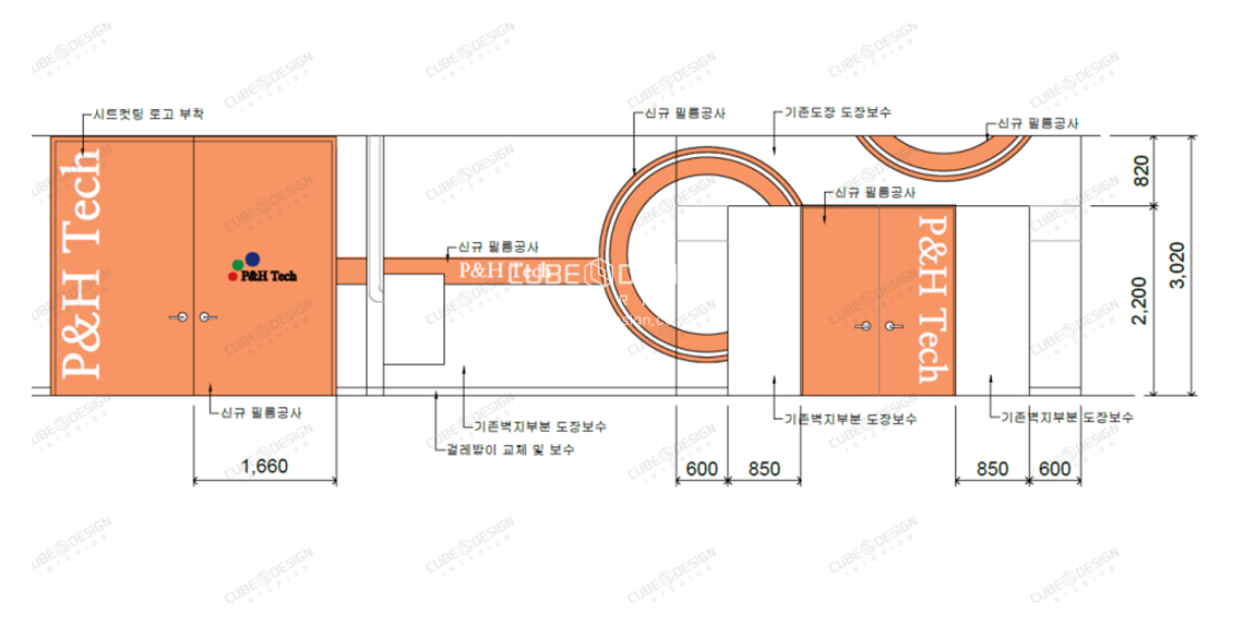 복도구간 파사드 아트월 디자인 및 CI 로고 까지 완벽하게 시공이 완료된 현장입니다.